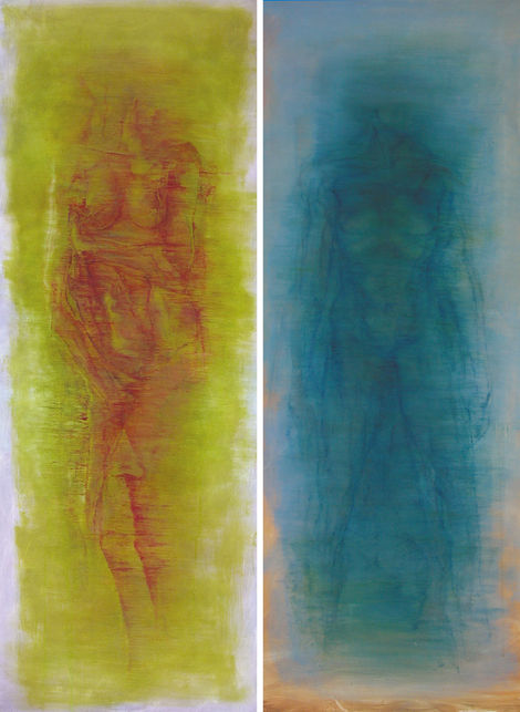 Human body is always a forbidden topic in Chinese tradition. That is why Chinese paintings find the beauty of the nature via natural elements like mountains, rivers, flowers and birds. Human bodies, however, are common objects in western paintings. The artist endeavours to seek a balance between the culture differences.